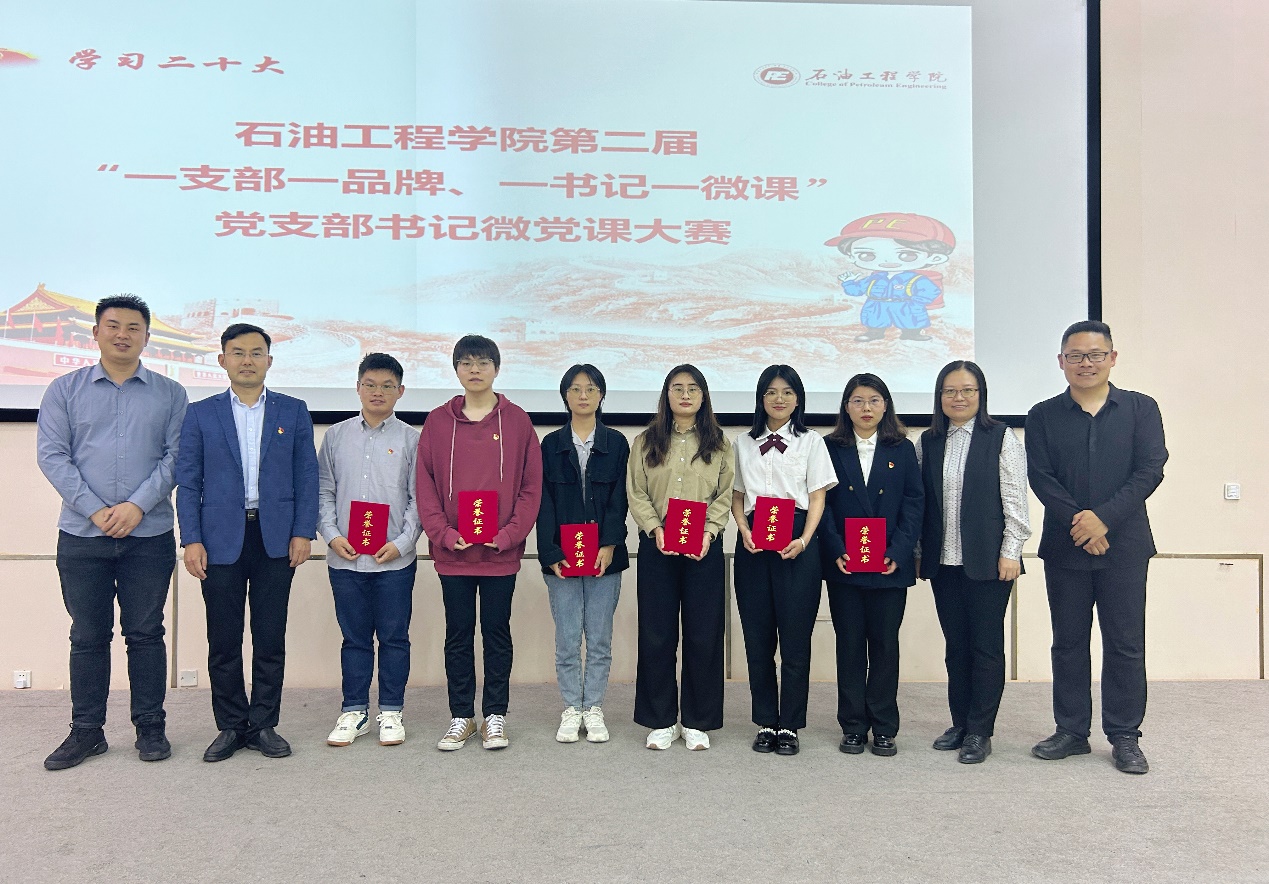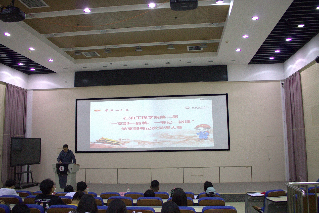 為深入學(xué)習(xí)貫徹黨的二十大精神,扎實(shí)開展學(xué)習(xí)貫徹習(xí)近平新時代中國特色社會主義思想主題教育,進(jìn)一步鍛造黨員隊(duì)伍,提升黨支部書記綜合素質(zhì),5月4日下午,石油工程學(xué)院在四教401舉辦第二屆“一支部一品牌、一書記一微課”黨支部書記微黨課大賽決賽。黨委宣傳部副部長張延港、圖書館黨總支書記兼副館長、檔案館館長海鳳、學(xué)院黨委副書記劉東東,團(tuán)委書記肖亞楠及相關(guān)輔導(dǎo)員作為評委出席,10名學(xué)生黨支部書記圍繞選定主題進(jìn)行講述。