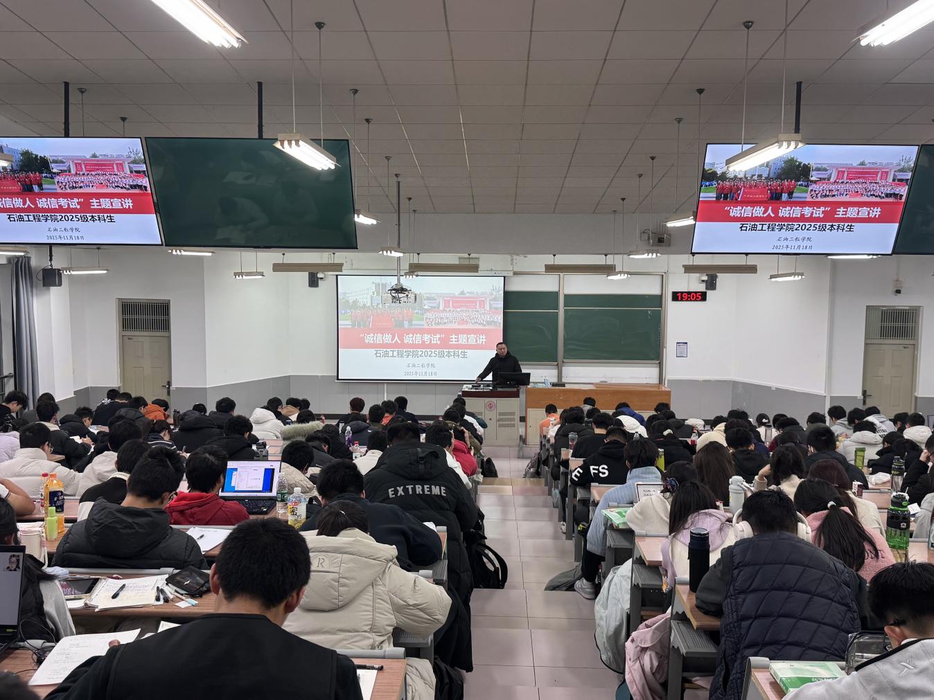 為幫助2025級(jí)本科新生鞏固英語(yǔ)學(xué)科基礎(chǔ)、提升語(yǔ)言應(yīng)用能力,同時(shí)強(qiáng)化誠(chéng)信意識(shí)、樹(shù)立正確考試觀念,11月18日,石油工程學(xué)院在完成新生第一次英語(yǔ)月考后,同步組織開(kāi)展英語(yǔ)月考錯(cuò)題集中講解活動(dòng)與“誠(chéng)信做人 誠(chéng)信考試”主題宣講會(huì),全體本科新生參加。