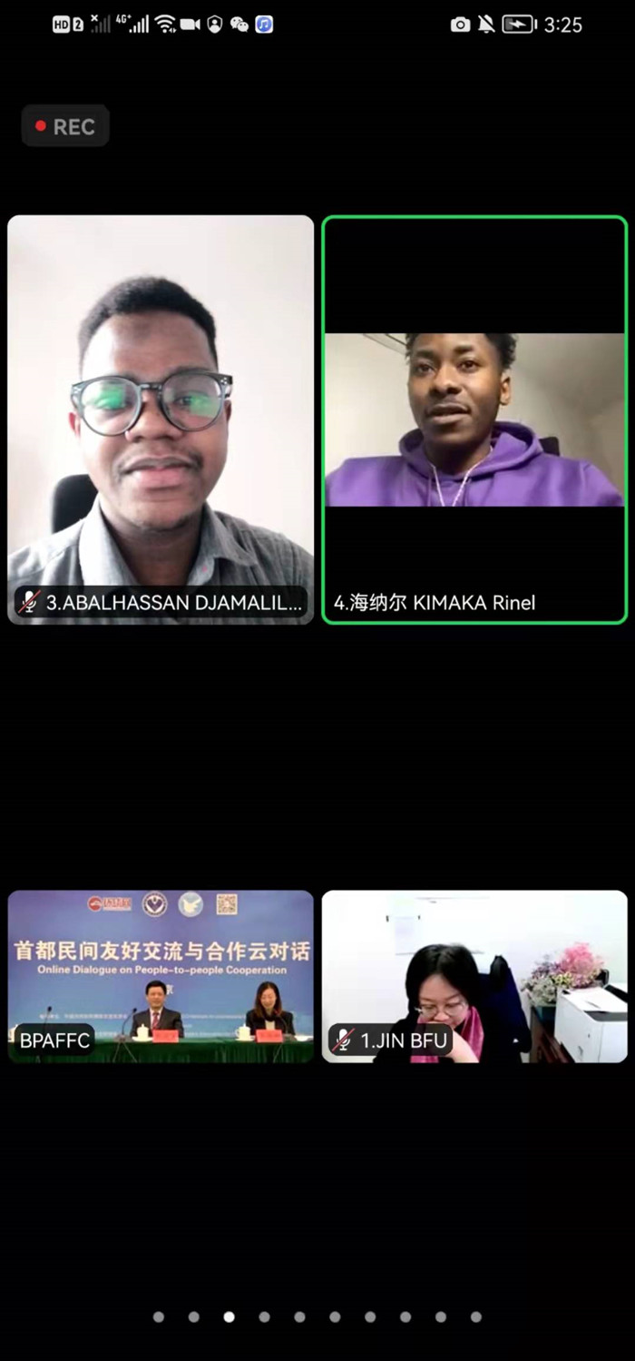 From 15:00 to 17:00 on February 17, the Beijing People's Association for Friendship with Foreign Countries and the Beijing Association for the Promotion of International Exchanges of Non-governmental Organizations invited 18 foreign friends in Beijing who watched the opening ceremony of the Beijing Winter Olympics to participate in the cloud dialogue of "Beijing Winter Olympics in the Eyes of Foreigners", sharing their feelings about the Beijing Winter Olympics around themes of "unity", "technology", "green", "simplicity", "wonderful" and "safety". KIMAKA PAMBOU RINEL ROLYSNA and ABAL-HASSAN FADHULI SAID ABDILLAH DJAMALILLAIL, international students of CUPB, shared their feelings on the theme of "My Impression of the Opening Ceremony of the Beijing Winter Olympics".
