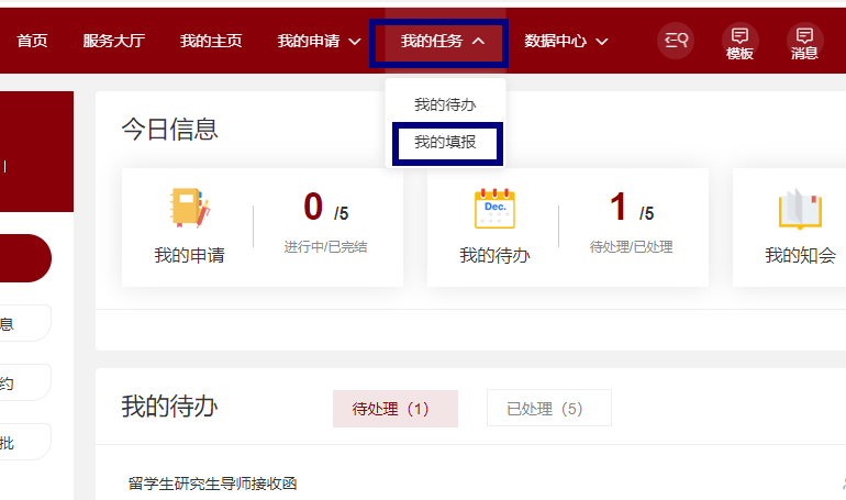 3.Then Click “我的填報(My reports)”in “我的任務(My tasks)”.