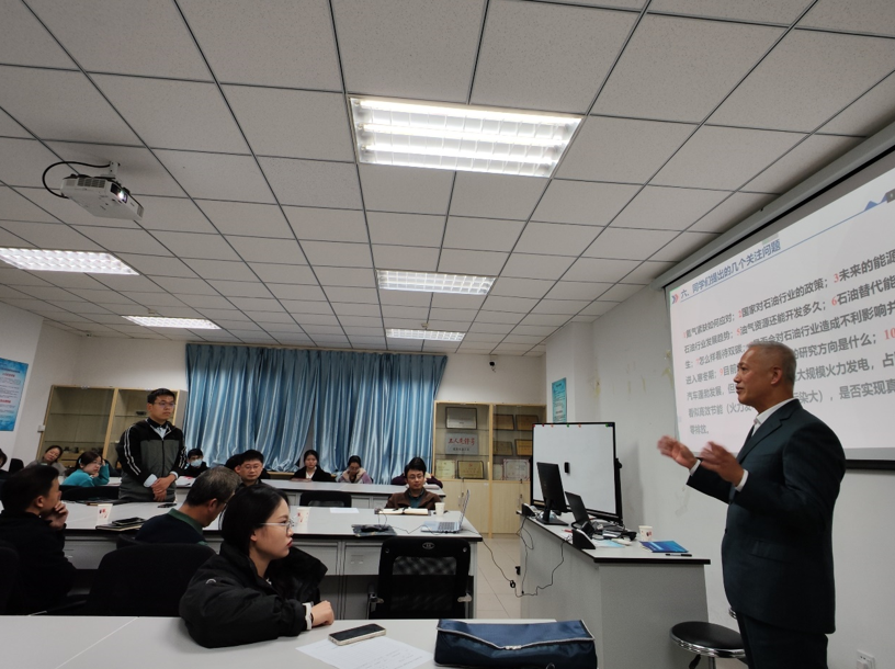 車長波研究員從黨的二十大報告對能源資源的重要論述、習近平總書記對能源資源的重要論述展開討論,表明了習總書記和黨中央對能源資源的重視,及進一步加大對油氣勘探開發力度的決心;對能源資源的基本形勢和特點以及能源資源的潛力及發展趨勢進行了分析,強調了我國油氣對外依存度持續增加,形勢嚴峻,呼吁同學們積極應用自己的智慧、所學知識和高科技手段進行國內復雜油田的油氣勘探與開發,要堅決貫徹習總書記的重要指示,將能源的飯碗牢牢端在自己的手上;總結了能源資源的戰略對策,并針對同學們提出的一些相關問題進行解答,希望大家積極突破油氣勘探開發技術,為祖國貢獻更多的油氣。
