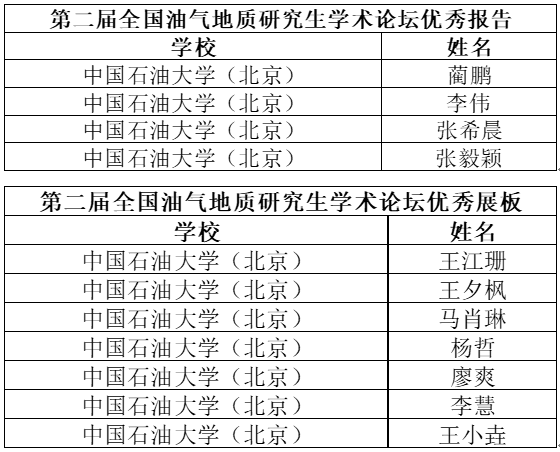 與此同時,在第二屆全國油氣地質研究生學術論壇上,我院學子獲得優秀展板獎7項,優秀報告獎4項。