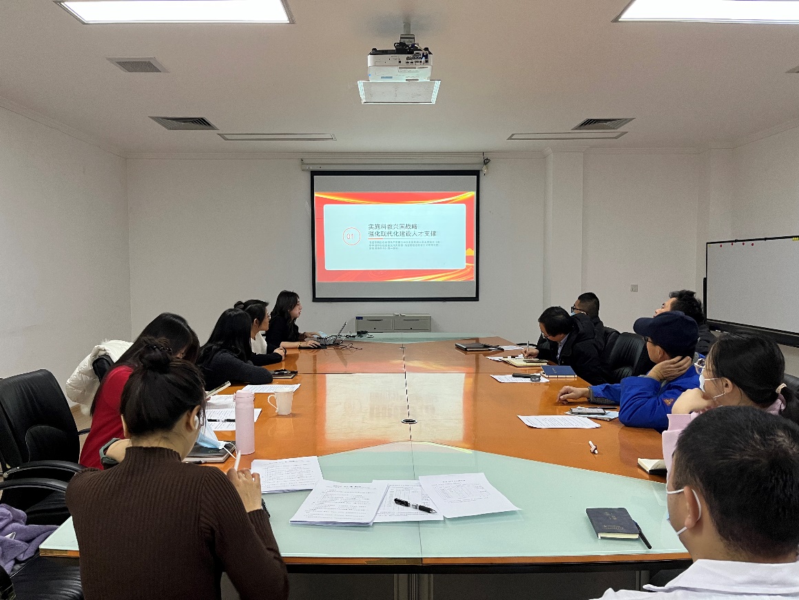 接下來崔梓玉老師帶領大家學習學校科技處“強化有組織科研,自覺履行高水平科技自立自強使命擔當”相關文件,內容包括實施科教興國戰略,強化現代化建設人才支撐、加快建設科技強國實現高水平科技自立自強、關于加強高校有組織科研推動高水平自立自強的若干意見、學校開展有組織科研探索與取得主要成效。崔梓玉老師介紹了我校學科建設思路、搭建大平臺、承擔大項目、凝聚大團隊、取得大成果、做出大貢獻的具體內容。