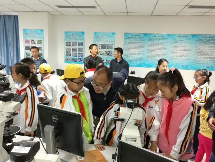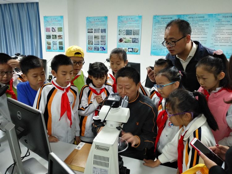 第二站來到國家實驗教學示范中心基礎地質教學實驗室。溫老師給大家在顯微鏡下放置了巖石薄片樣本,普通的石頭在顯微鏡下立刻變得光彩奪目!