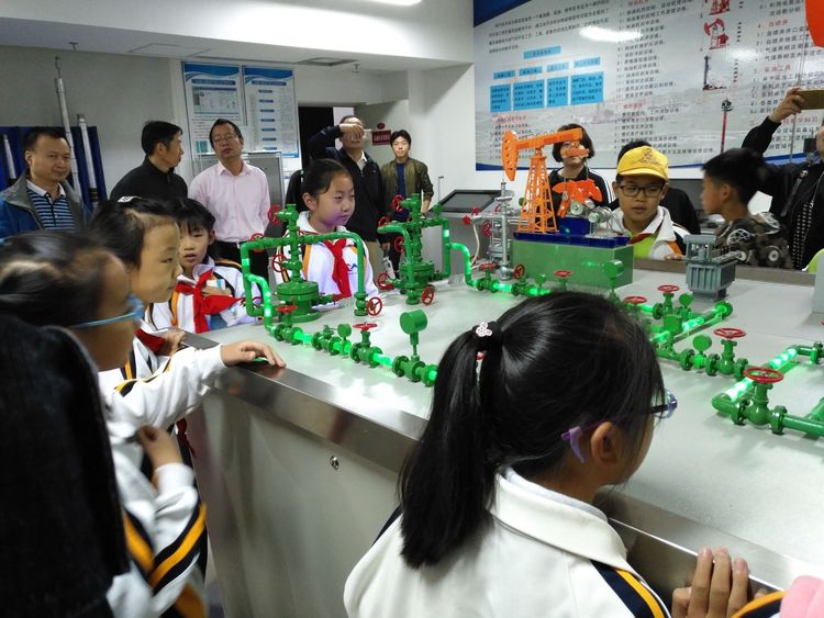接下來小朋友們來到了鉆井仿真實驗室,實驗室負責人朱老師的講解深入淺出,迅速的地吸引了所有人的注意力,他從“如何來找石油,怎么來采石油,石油開采后如何運輸?”這三個問題展開,緊緊捉住了我們的好奇心和求知欲。我們好奇的仔細觀看著,內心已經對以前遙不可及的石油開采有了初步了解和認知。