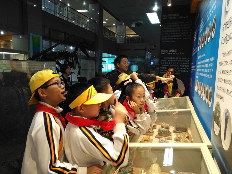 小朋友們都認真聽地學院的溫老師講解,他將深奧博大的地球科學知識講解的通俗易懂。溫老師主要介紹了地球歷史,礦物成分,巖石類型等相關知識!