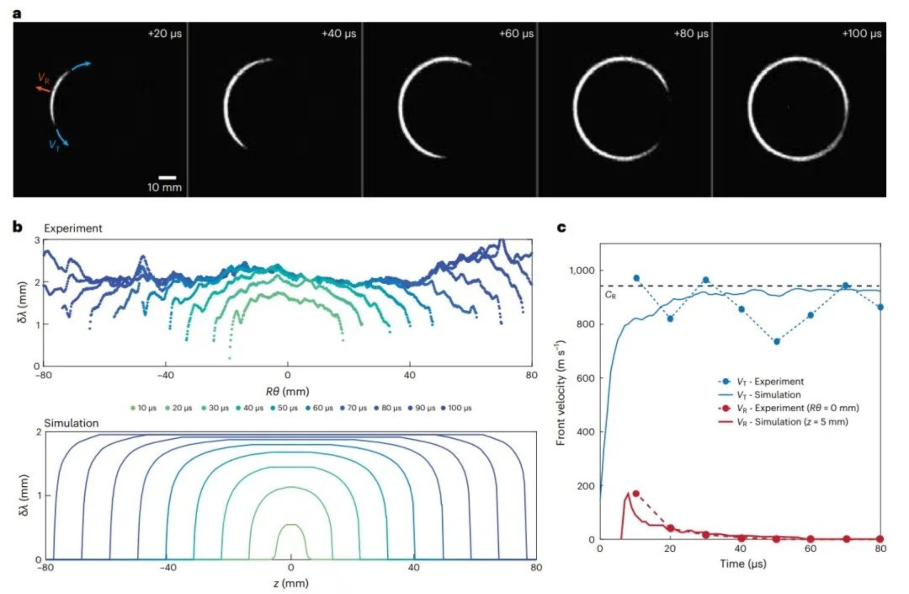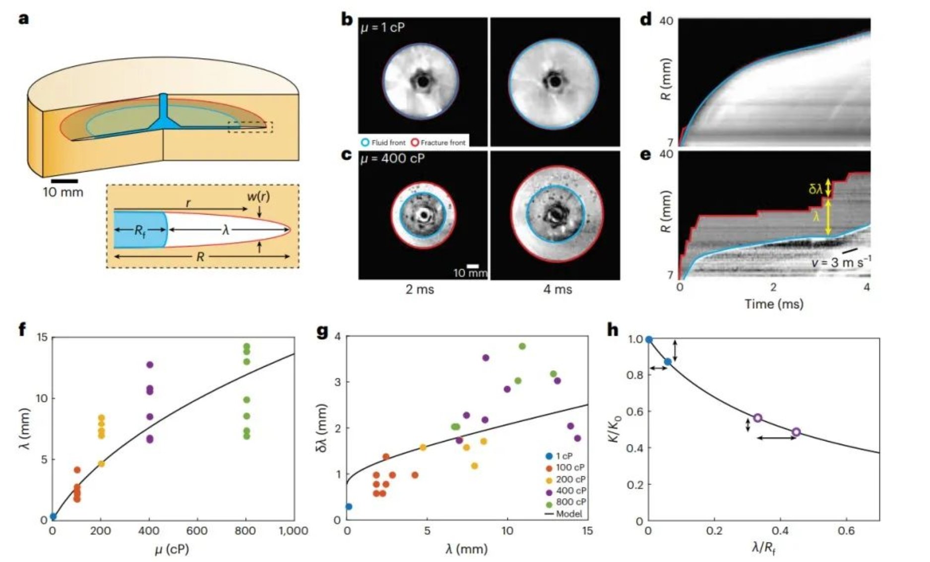 該團(tuán)隊同時還開發(fā)了數(shù)值模型。團(tuán)隊成員、諾丁漢大學(xué)Gabriele Albertini說:“我們的數(shù)值模型基于相同的斷裂理論數(shù)學(xué)方程和假設(shè),但完全是三維的。我們發(fā)現(xiàn),模擬能夠以定量的方式重現(xiàn)實驗數(shù)據(jù),而不需要新的擬合參數(shù)。這表明我們的發(fā)現(xiàn)具有普遍性,適用于在各種情況下產(chǎn)生的裂縫,而不僅僅是流體驅(qū)動裂縫的特定情況。”