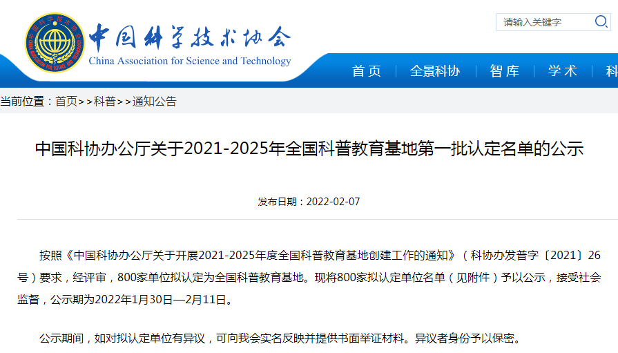 近日,中國(guó)科協(xié)辦公廳公布了“2021-2025年‘全國(guó)科普教育基地’第一批認(rèn)定名單”,中國(guó)石油大學(xué)(北京)石油之光科技館正式入選“2021-2025年第一批全國(guó)科普教育基地”。