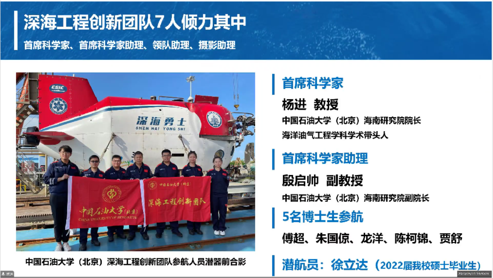 本次活動由實驗室主任助理廖廣志教授主持,邀請到中國石油大學(北京)安全與海洋工程學院副院長楊進教授,作了題為“當深海勇士號、遇見深海一號”云端科普講座,通過立方石油微信公眾號及騰訊會議直播,吸引了包括高校、企業、中小學生、公眾等1500余人在線參加。