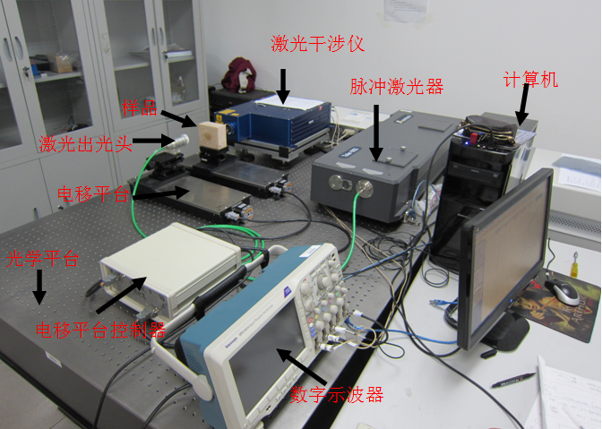 主要功能(用途):用脈沖激光產生點超聲源,用激光干涉方式測量樣品各種模式的振動(縱和橫波)或在樣品表面振動的振幅