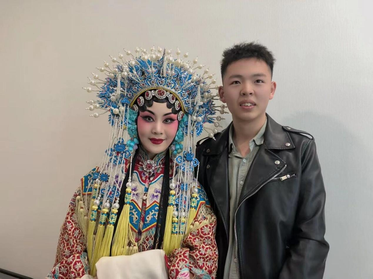 此后張益博更是在這條“愛戲”的路上披荊斬棘、一往無前。他曾榮獲天津市學生藝術節戲曲組一等獎,與天津市河北梆子劇院的陳春、李斌、北京市河北梆子劇團王洪玲、張樹群等多位戲曲名家進行深入交流學習;與中國評劇院評劇名家王麗京老師、央視著名主持人白燕升老師多次進行戲曲發展的交流探討;他還曾被北京市河北梆子劇團團長、黨的二十大代表王洪玲老師寫入黨的二十大個人專訪中。