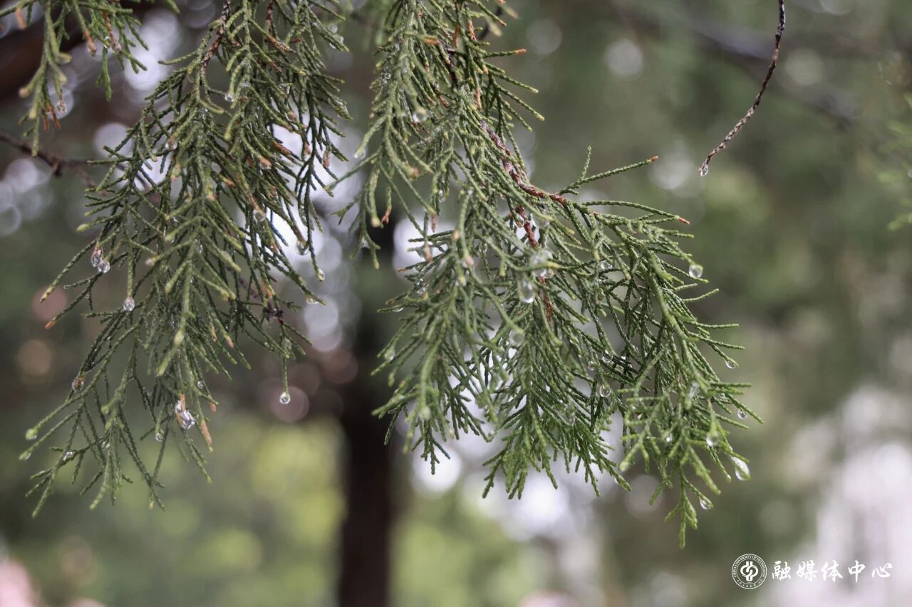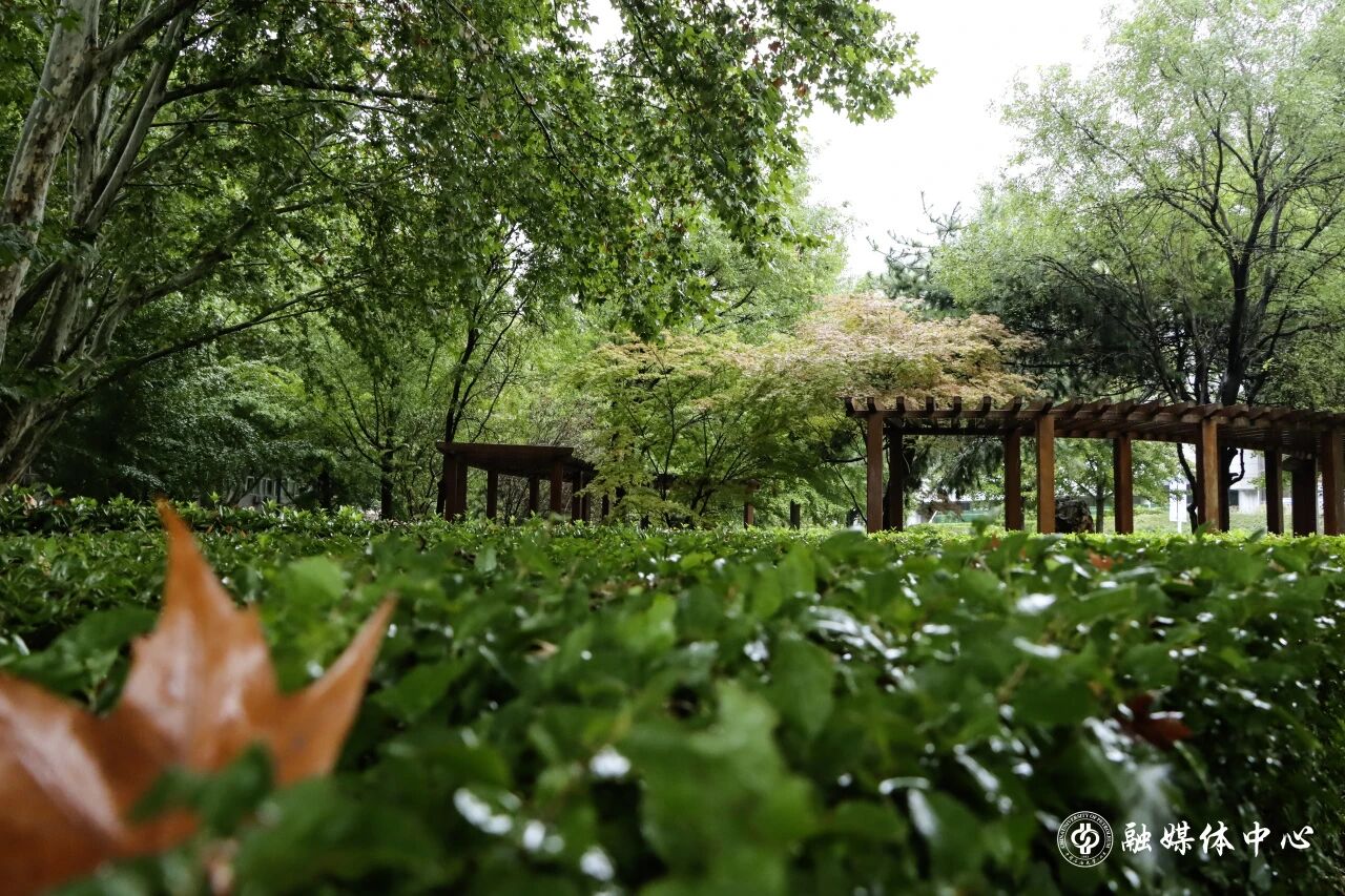 碎銀般的雨珠串起整個校園,撐傘走過潮濕的小徑,聽雨打葉梢的簌簌聲,仿佛時光也放慢了腳步。