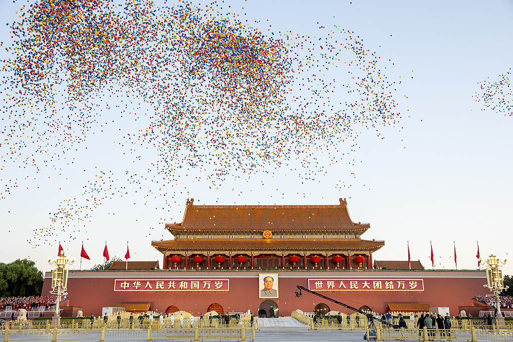 萬千氣球與白鴿飛過天安門城樓