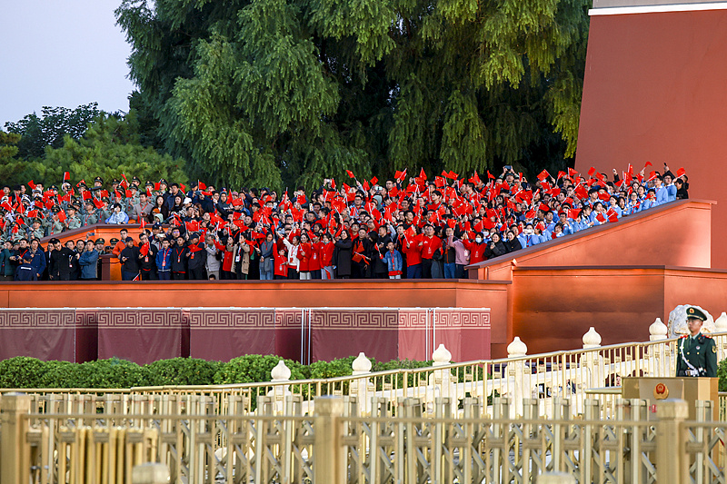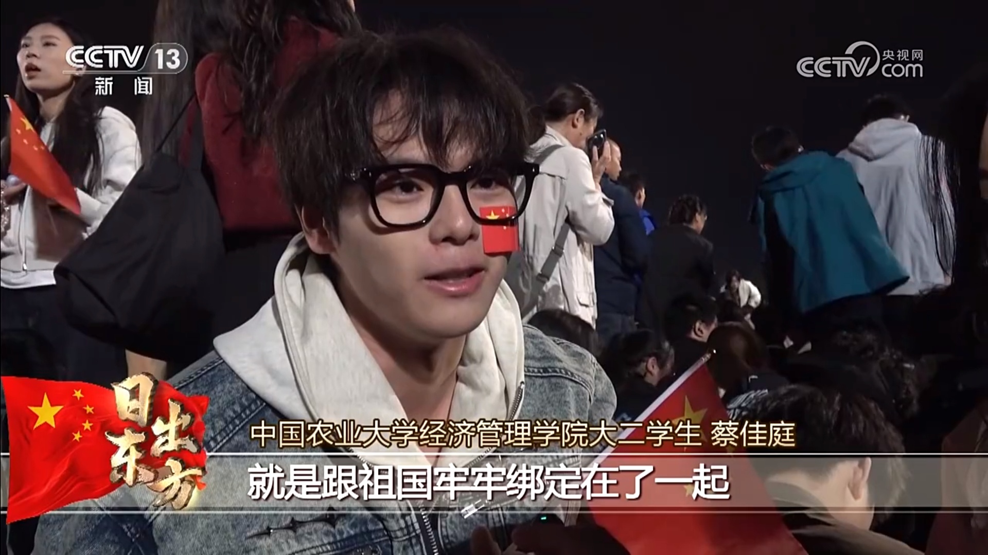 中國農業大學經濟管理學院大二學生 蔡佳庭:在這里有一種歸屬感,沒有想象中一個人、幾個人在這兒等的那種寂寞。你一進入到這個廣場之后,你就會感覺到,大家都拿著紅旗,都朝一個地方看,感覺自己的命運和祖國牢牢綁定在了一起,讓人感覺到一種深深的歸屬感和認同感。