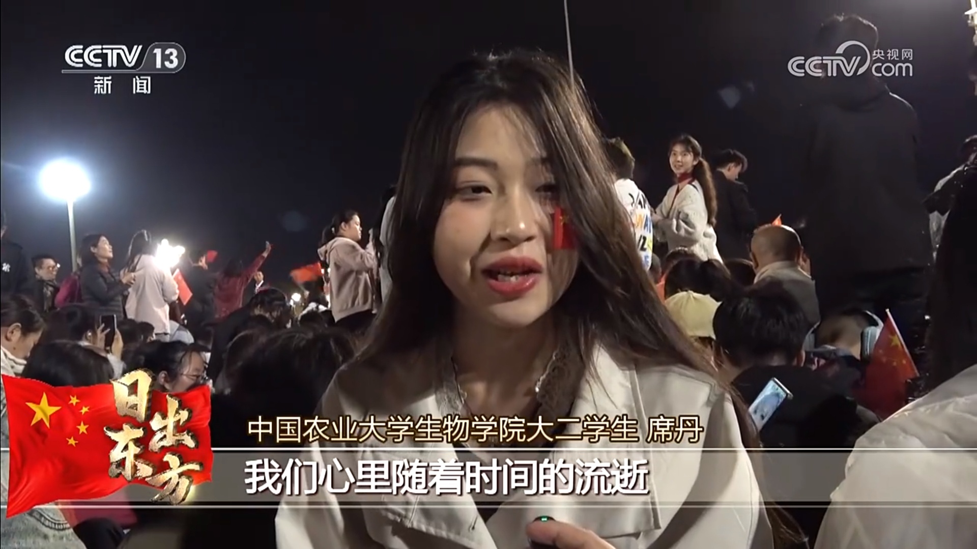 中國農業大學生物學院大二學生 席丹:我們周邊還有很多人陪我們,很多志同道合的人,我們心里隨著時間的流逝會越來越興奮。國旗升起的那一刻,想大聲地祝我們新中國75周歲,生日快樂。
