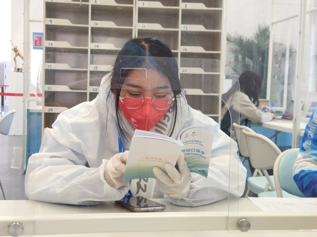 正式進入冬奧村之前,路修遠已經在學校接受了四個多月的線上線下結合的冬奧志愿者培訓。作為冬奧志愿者,路修遠要完成冬奧組委規定的23門志愿者培訓線上課程,包含奧運基礎知識、冰雪運動基礎知識、急救與防護知識、防疫知識等;北京第二外國語學院也開設了“冰雪語者”冬奧志愿訓練營,建立“1+8”冬奧志愿者培訓體系。路修遠說,“這些培訓都非常實用,對我上崗后的工作有直接幫助,讓我對冬奧服務工作有了信心。”