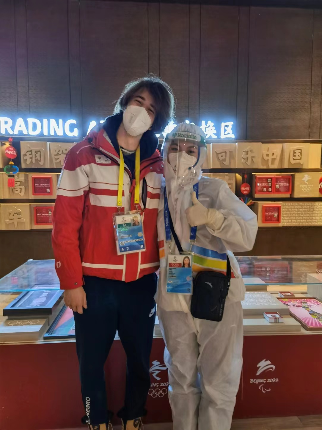 在報(bào)刊亭,有位葡萄牙運(yùn)動(dòng)員在此來(lái)回踱步,志愿者何冠霖和閆宏偉主動(dòng)上前詢(xún)問(wèn)是否需要幫助,葡萄牙運(yùn)動(dòng)員向志愿者表示她想帶一些圖片多的書(shū)籍,因?yàn)闈h字太多不方便她閱讀。于是志愿者何冠霖和閆宏偉向她詳細(xì)推薦了三本書(shū),分別是包含中國(guó)春節(jié)傳統(tǒng)年畫(huà)的《中國(guó)年畫(huà)》,中國(guó)動(dòng)物的《海錯(cuò)圖》以及中國(guó)山河風(fēng)景的《攝影中國(guó)》。葡萄牙運(yùn)動(dòng)員表示非常開(kāi)心和感激,在等待結(jié)賬的過(guò)程中,她又反復(fù)提到了對(duì)中國(guó)傳統(tǒng)文化的喜愛(ài),她也十分期盼能在中國(guó)旅游,領(lǐng)略中國(guó)的大好河山。最后為了表示感謝,她向志愿者贈(zèng)送了葡萄牙的徽章作為紀(jì)念,何冠霖也祝愿她在比賽中取得好成績(jī)。