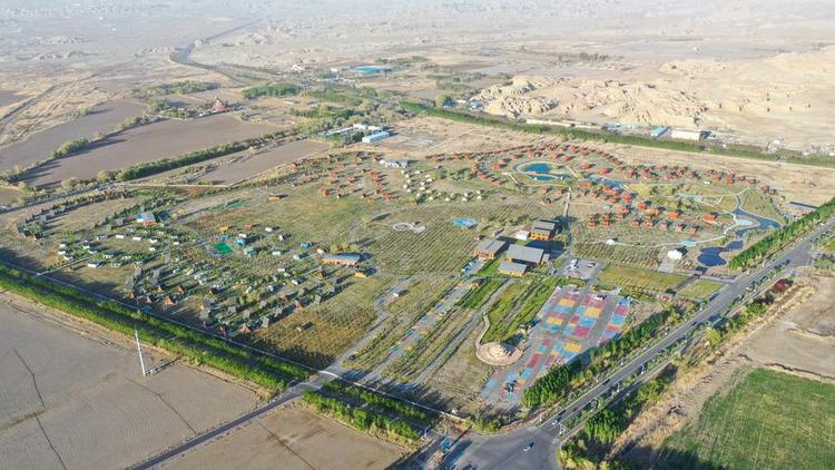 This aerial drone photo taken on May 2, 2024 shows a recreational vehicle (RV) camping park in Urho District of Karamay, northwest China's Xinjiang Uygur Autonomous Region. (Xinhua/Ding Lei)