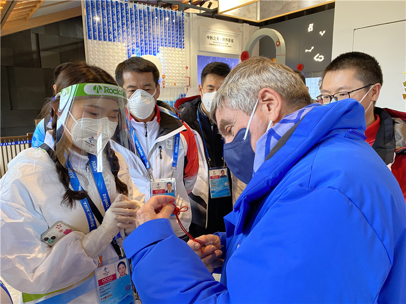 2月11日,國際奧委會主席巴赫來到延慶冬奧村,在與高校賽會志愿者交流過程中,收獲了志愿者親手編織的中國結(jié),還特意去“10秒”中醫(yī)藥體驗館“打卡”了中國功夫五禽戲,珍藏了志愿者贈送的繪有老虎形象的五禽戲書簽。此外,在國家高山滑雪中心,巴赫主席還獲贈了志愿者設計的紅色虎頭剪紙。