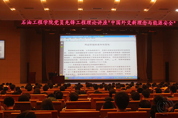 10月20日晚,石大石油工程學院黨員先鋒工程理論講座在研修三樓報告廳舉辦。講座邀請到了石大人文社會科學學院教授龐昌偉為黨員們做題為“中國外交新理念與能源安全”的報告。石油工程學院本科生、研究生黨員骨干共700余人聆聽了講座。