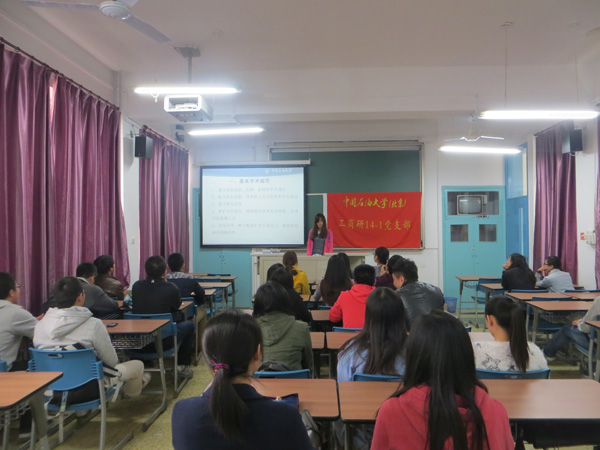 為全面貫徹落實關于科學道德和學風建設宣講教育工作的重要指示精神,進一步鞏固和擴大研究生科學道德和學風建設宣講教育工作成果,提高研究生培養質量,10月22日到24日,石大工商管理學院2014級研究生黨支部開展了 “遵守學術規范,嚴守學術道德”組織生活會。