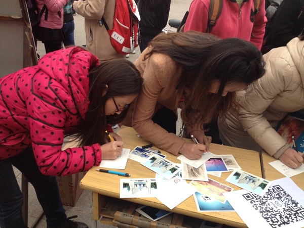 活動第二階段,明信片寄送和心靈涂鴉活動。該活動于感恩節當天在南廣場舉辦,活動吸引來上百人參與,由暖心社提供100張明信片寫滿了同學們感恩的話語,同學們將自己對親人、對朋友的感恩之情融入這小小的卡片中,活動現場的心靈涂鴉板也貼滿了同學們對他人對自己的感恩和祝福。