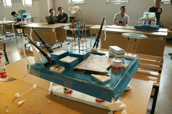本次比賽分為初賽和決賽兩個階段。初賽于25日下午舉行,選手們根據設計書在規定的時間內,用給定的材料進行了鉆井平臺模型制作,經過嚴格的篩選,共選出9支隊伍進入決賽。