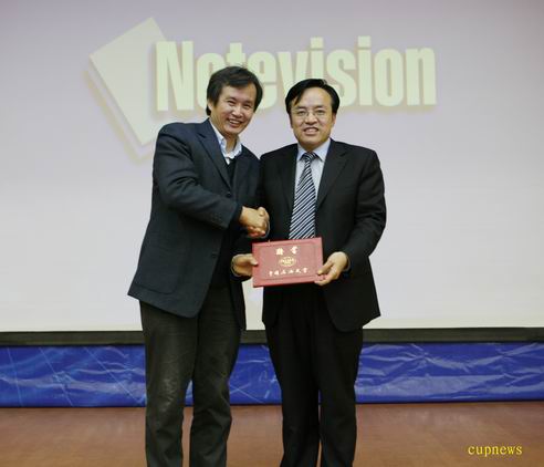 當天晚上,黃鳴先生在張來斌校長的陪同下,滿懷激情地登上了翠宮二樓報告廳的講臺。在講壇開始之前,黃鳴先生接受了張來斌校長為他頒發的“榮譽教授”證書,全場響起熱烈掌聲。