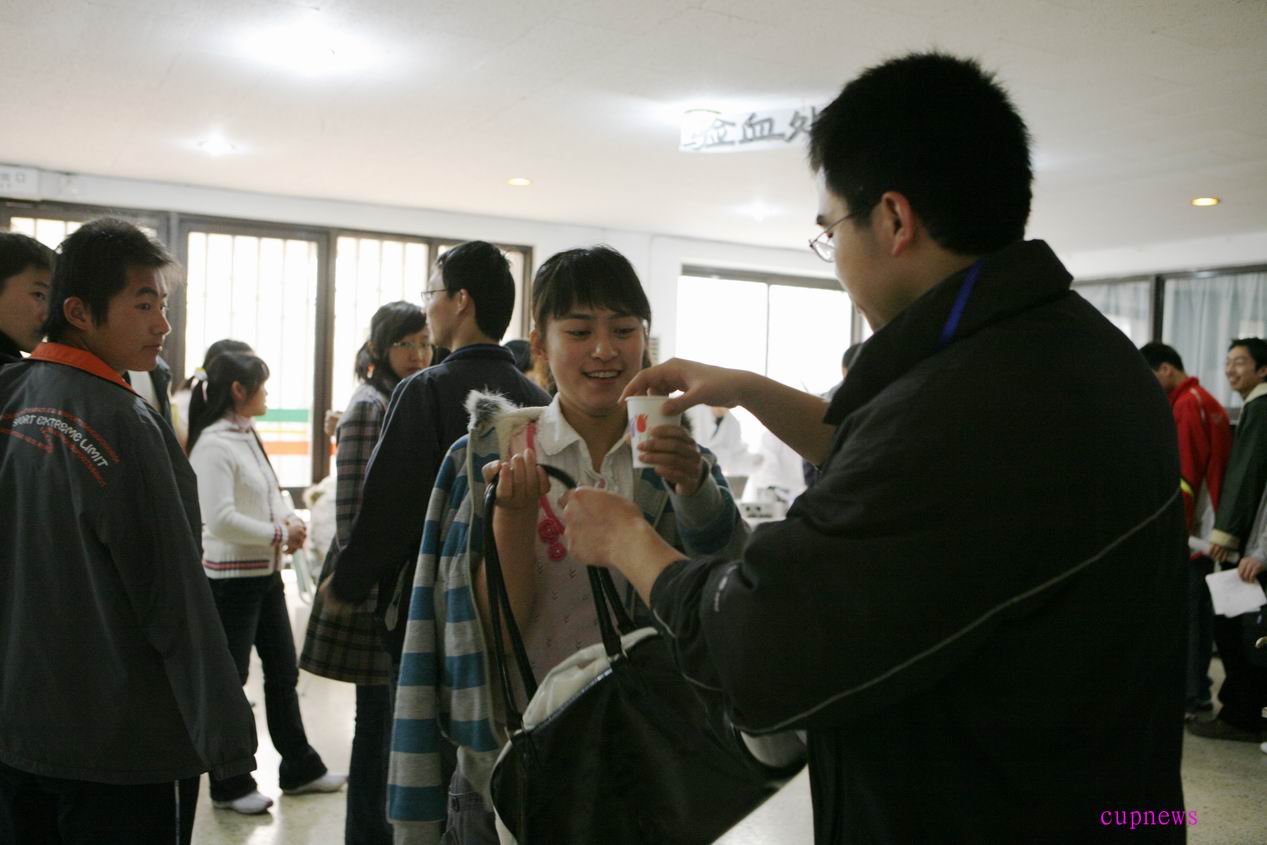 經(jīng)校醫(yī)院統(tǒng)計,參加本次無償獻血活動報名人數(shù)共有923人,經(jīng)體檢篩查,實際獻血人數(shù)674人,采血總量134700毫升,超過獻血指標22名,其中近百人兩次以上無償獻血。今年是奧運年,為了提供稀有血型,國際交流合作中心積極組織動員留學生參與獻血,共有11名留學生參加獻血。
