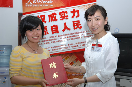 4月18日下午,包括我校在內的七所高校20名在校大學生參加了首次人民網校園網友見面會。我校團委新聞中心的兩名記者獲聘人民網高校通訊員。人民網市場部總監宋麗云為他們頒發了聘書。