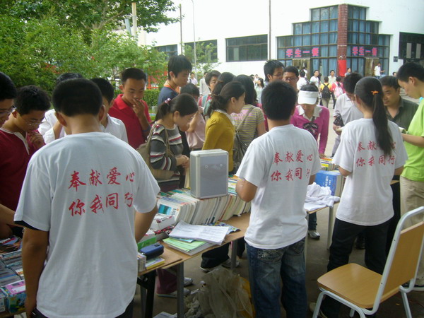 由學(xué)生工作處主辦、物品捐贈(zèng)中心具體實(shí)施的“支援災(zāi)區(qū),溫暖中國(guó)”大型愛心義賣活動(dòng)今天下午6:00在一餐門前落下帷幕。此次活動(dòng)分為“物品捐贈(zèng)”和“愛心義賣”兩個(gè)部分,不接受錢款捐贈(zèng),以書本及生活用品為主,5月29日、30日在學(xué)校一餐、潤(rùn)杰、陽(yáng)光公寓舉行了捐贈(zèng)活動(dòng),所捐物品主要有衣服、書本、雜志、電子產(chǎn)品、筆、筆芯、磁帶、水杯等。義賣時(shí)間是6月1日、2日,分別在潤(rùn)杰西門和學(xué)校一餐門前舉行。