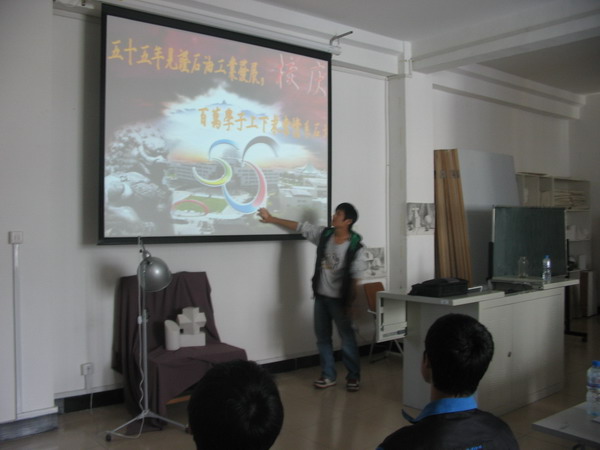 學校各院系的選手按抽簽順序依次登臺解說自己的參賽作品。參賽作品分ps作品和手繪作品兩大類,以奧運和校慶55周年為主題,展現了石大的風采。作品設計的水平和質量較高,得到了大家的認可。