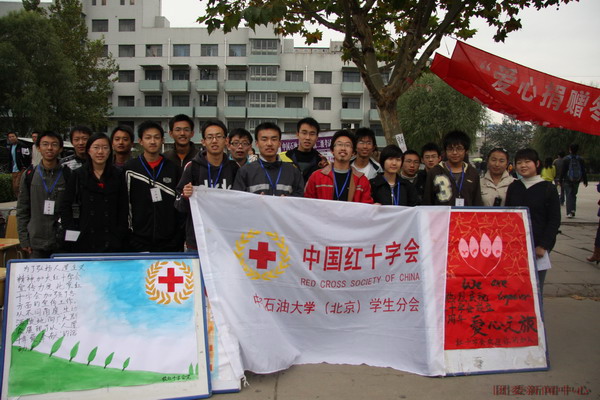 北京紅十字會成立于1928年,至今已有80年歷史。中國石油大學紅十字會分會成立4周年,全會成員由最初的十幾人到現在的一百多人,隊伍不斷壯大。4年間,遵循“濟危救困,敬老助殘,助人為樂”的方針,秉承“發揚人道精神,促進和平事業”的宗旨,紅十字會舉辦了一系列的愛心公益活動。奧運會期間,我校紅十字會組織了手語教學、初級急救培訓等活動。