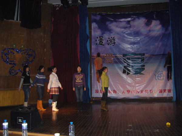 在“才藝大比拼”環(huán)節(jié)中,各組選手紛紛將自己精心準(zhǔn)備的節(jié)目呈獻(xiàn)給觀眾,有風(fēng)格多樣的話劇小品、悠揚(yáng)纏綿的樂(lè)曲和風(fēng)格各異的舞蹈。其中輕松搞笑的話劇《顯哥續(xù)集》、纏綿情歌《春泥》和勁舞《Miss mix》等節(jié)目在觀眾中激起了熱烈反響。而外語(yǔ)系2–579宿舍別出心裁的節(jié)目更是廣受贊譽(yù):首先是一曲悠揚(yáng)的葫蘆絲曲,然后是具有異域情調(diào)的舞臺(tái)劇《Jambalaya》。在《Jambalaya》歡快詼諧的曲調(diào)中,五位女生演繹了一群活潑可愛(ài)的孩子恣意玩耍的場(chǎng)景,演出充滿天真和童趣,受到評(píng)委和觀眾的一致好評(píng)。