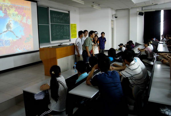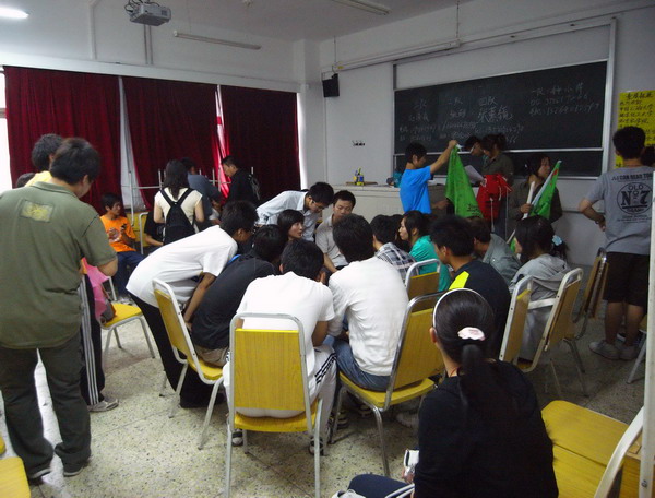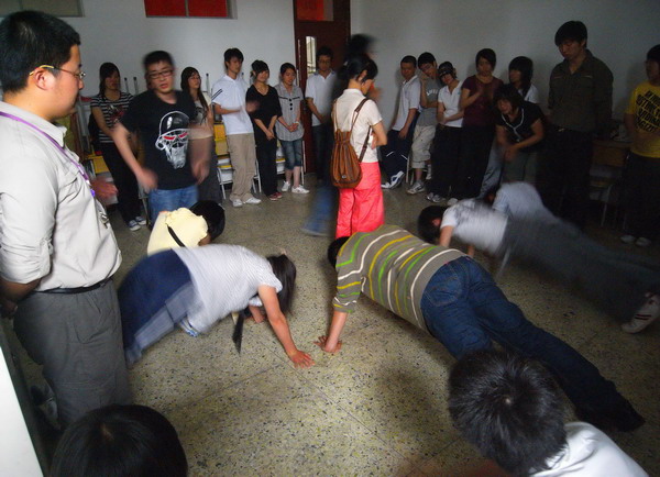 隨著207、208教室《我相信》歌曲的響起,活動正式開始。每個教室的主持人先向同學(xué)們介紹了擴(kuò)展活動的歷史與意義,并激發(fā)起同學(xué)們參加活動的熱情,隨后將同學(xué)分為16個團(tuán)隊,讓同學(xué)們自己進(jìn)行了團(tuán)隊建設(shè)。在南門小廣場,拓展師帶領(lǐng)同學(xué)開展進(jìn)行了盲眼和電網(wǎng)兩個室外項(xiàng)目。在第二教學(xué)樓中,同學(xué)們進(jìn)行了領(lǐng)袖風(fēng)采的活動環(huán)節(jié)。