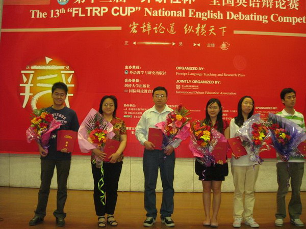 在剛剛閉幕的第13屆“外研社杯”全國英語辯論賽上,我校代表隊選手王珊、劉蒙蒙在外語系趙卿老師的指導下,經過頑強的奮戰,最終獲得二等獎的好成績,在134支參賽代表隊中排名第27位。先前,在5月10日全國英語辯論賽開幕式上,我校由于本年度校園辯論賽選拔賽組織得力,榮獲了外研社頒發的優秀組織獎。