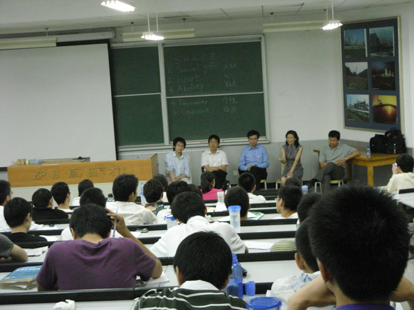 5月19日晚,由校就業指導中心、心理咨詢中心主辦,職業發展協會承辦的就業指導系列講座之“知名企業經理談就業成功之道”在三教208舉辦。AchieveGlobal培訓咨詢公司大中國區的培訓總監陳欣女士、 IBM大中華區的李永財先生、美國霍尼維爾公司安防事業部亞太地區系統團隊總經理薛成剛先生以及來自微軟大中華區的梁明(音譯)先生受邀來到現場。