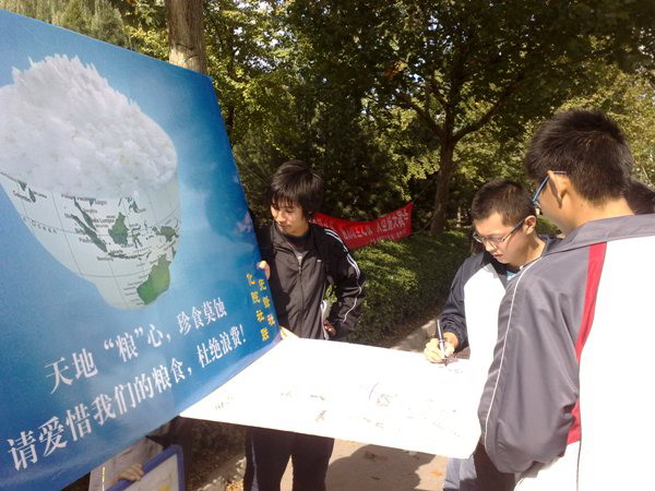 10月16日中午,化工學院先鋒社在一餐門口舉行了“世界糧食節”簽名活動。
