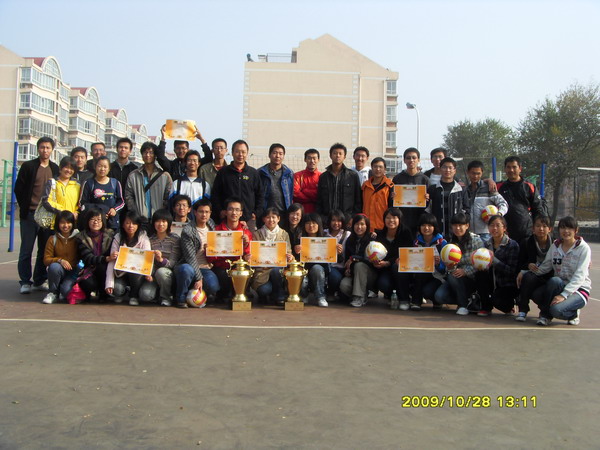 我校2009年學生排球聯(lián)賽經(jīng)過幾輪激烈角逐,于10月28日在東操場圓滿落幕。