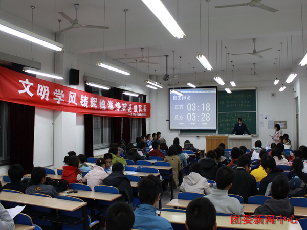 11月1日晚6:30,由機電工程學院團委主辦,機電工程學院社團聯(lián)合會承辦,機電工程學院辯論協(xié)會協(xié)辦的“機電工程學院學風月辯論賽初賽”第一場比賽在第三教學樓107教室舉行。