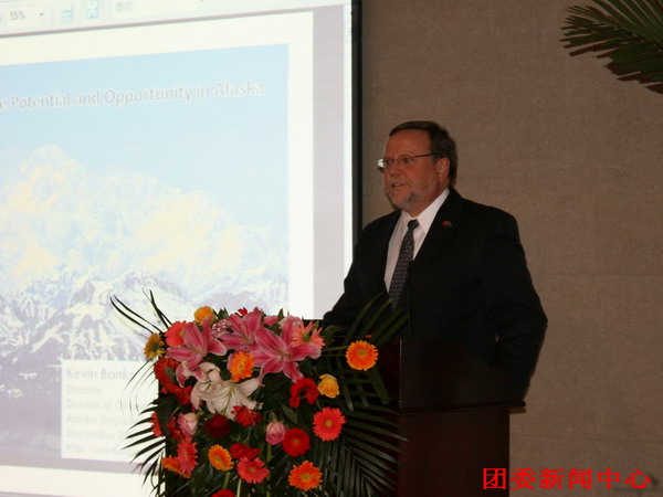 Kevin Banks先生首先介紹了阿拉斯加的特殊的地理位置、人文風俗以及有著大量油氣儲量的優勢條件。同時表達了愿與中國政府、企業之間特別是在能源領域合作的期望以及相關的看法。