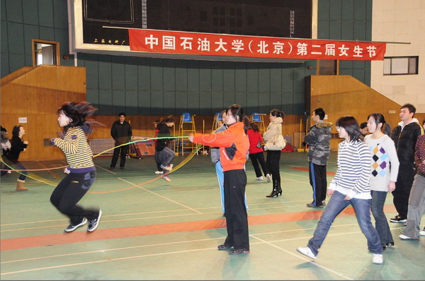 為了活躍校園文化生活,加強我校女生之間的友誼交流,彰顯我校女生風采。2010年3月7日上午,在小雪之中,體育教學部在我校體育館舉辦了中國石油大學第二屆“女生節”體育趣味比賽。