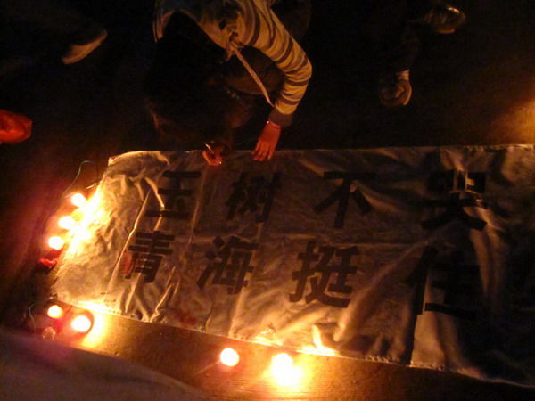 4月21日晚9:00,化工學(xué)院過程08-2班、青海老鄉(xiāng)會和08級地質(zhì)等七個班的學(xué)生在潤杰公寓六號樓后舉行哀悼活動,為玉樹地震災(zāi)害中罹難的同胞默哀祈福。