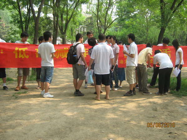 為響應2010年世界環境日·中國“低碳減排·綠色生活”這一主題,使更多人成為環境保護的宣傳者、實踐者和推動者, 6月5日上午,中國石油大學化學工程學院部分學生在昌平公園舉辦“世界環境日”主題宣傳活動。