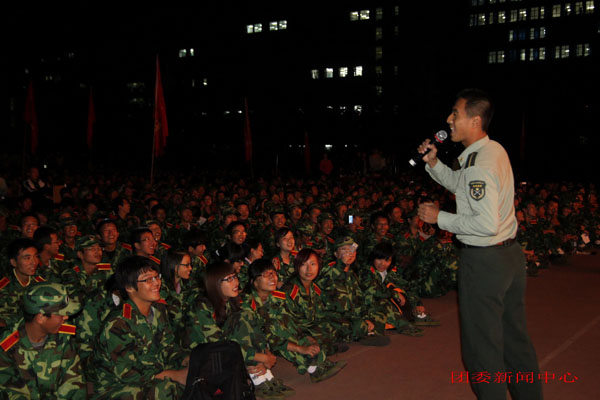 當晚,操場內(nèi)處處洋溢著激情、歡樂與祝福,全體新生、軍訓團教官及新生輔導(dǎo)員們在紅旗操場共同度過了一個狂歡之夜。