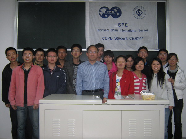 在整個活動中,同學(xué)們積極與張教授交流,現(xiàn)場氣氛十分活躍。會后,張教授與SPE執(zhí)委會人員合影留念,并互贈紀(jì)念品。