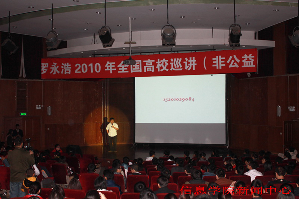 10月19日晚,中國石油大學科學會堂座無虛席,由信息學院社團聯合會承辦的“老羅”2010全國高校巡講之中國石油大學站在熱烈的氣氛中拉開帷幕,演講精彩紛呈,會場爆笑連連。