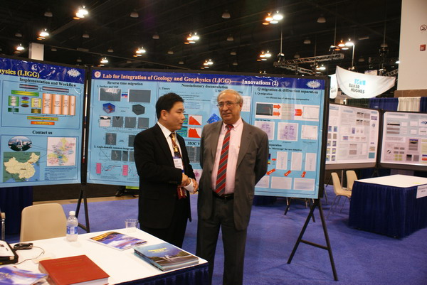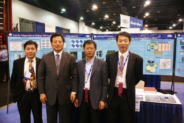 本次會議共錄用論文800多篇,其中我校共有11篇錄用,論文錄用篇數和參加會議人數均居國內高校之首。孫贊東教授、劉洋教授、馬繼濤博士等在會議上做了口頭報告,博士生袁三一、劉蘭峰、孫文博、王海洋、劉國昌等在會議上分別做了口頭報告或張貼報告。與會期間,石大地質與地球物理綜合研究中心開設了專門展臺,并同與會的國內外專家學者進行廣泛交流。石大師生還參加了SEG主席、Schlumberger、ExxonMobil、中國石油集團東方地球物理公司、麻省理工學院、德州大學奧斯汀分校、英國EAP項目組等舉行的招待會。