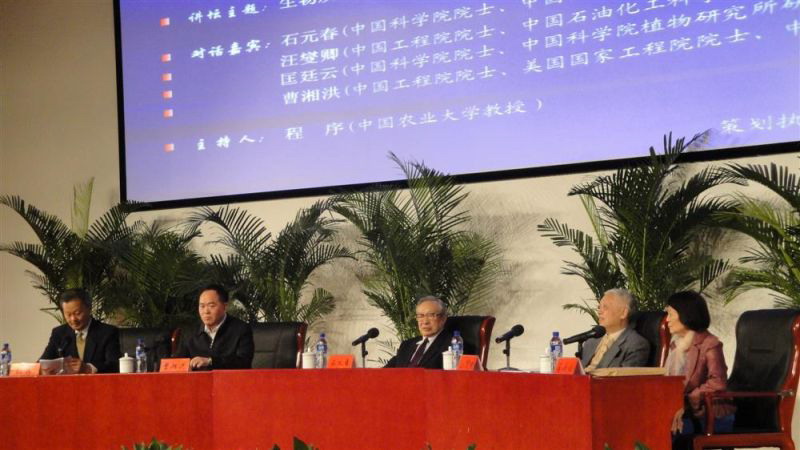 3月19日下午,中國生物質能源展示會系列活動之二––院士講壇在中國科學技術館一樓報告廳舉行。本次講壇邀請到了石元春、汪燮卿、匡廷云以及曹湘洪四位院士與大家暢談“生物質能與綠色能源的未來”。中國石油大學(北京)、北京化工大學、中國農業大學、北京林業大學、北京建院附中等校師生代表參加此次活動。