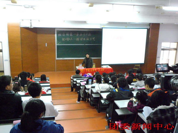 最后,馮建科聲情并茂地朗誦了他創作的歌曲,并祝福石油大學的學子們能夠在今后的學習工作中有更大的進步,為我國的石油工業的發展做出更大的貢獻。